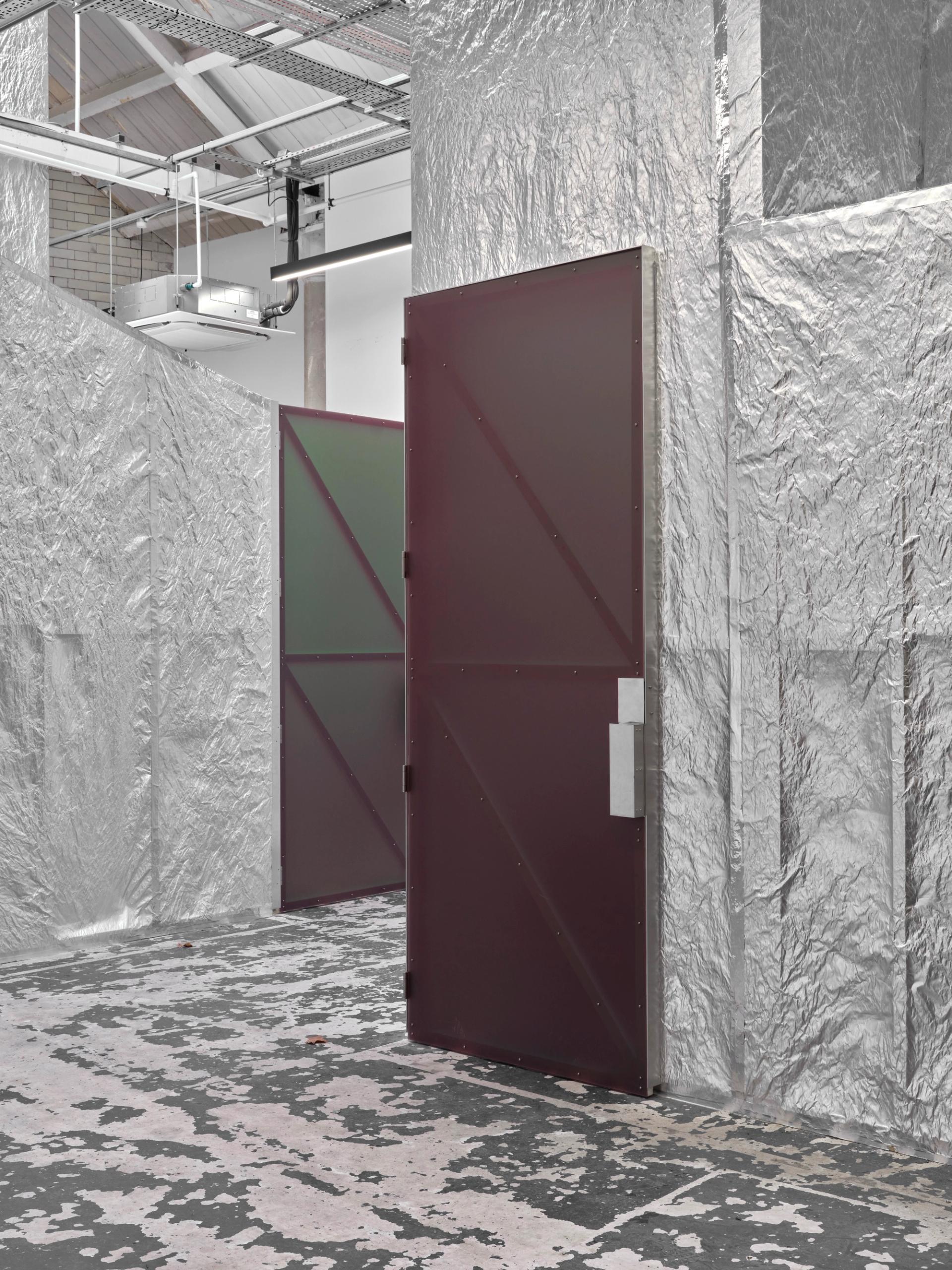 Aluminium fibreglass wrapped artists studios set within existing Victorian Washhouse in Manor Place. The chimney elements draw natural light down into the studios from the roof lights above, penetrating the existing hanging electrical services and ducting